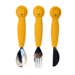 Grâce à ces amis animaux joyeux, il n’a jamais été aussi chouette de découvrir de nouvelles saveurs. Notre ensemble de couverts (fourchette, cuillère et couteau) a été spécialement conçu pour les petits convives. Dotés de manches en silicone doux et antidérapant parfaitement adaptés aux petites mains, ces couverts encouragent votre enfant à manger seul. TRIXIE