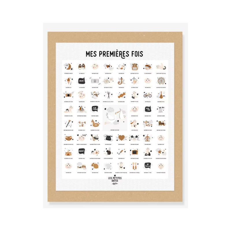 Avec l'affiche "Mes premières fois", vous pouvez désormais marquer chaque nouvelle prouesse de votre petit trésor grâce à un tampon dateur inclus et un encrier fourni.